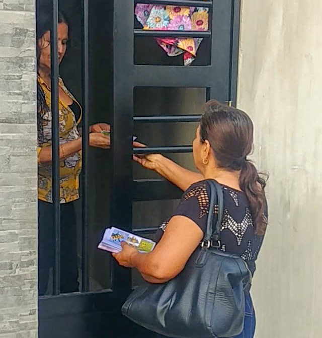 “Hace unas semanas salí a compartir la Palabra de Dios a unas cuadras de mi casa. Llevé unos folletos y estuve visitando algunos hogares, en algunos fui bien recibida, otros, por el mismo temor a un contagio no nos recibían ni los folletos. Pude darme cuenta del gran temor que hay, una gran vulnerabilidad, pero ni así quieren acercarse a Dios.”