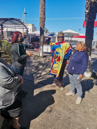 Muy cerca de ahí se encuentra una pequeña plaza, dónde otro grupo de hermanos se coloca con una mesa con alimentos y están preparados para presentar la Palabra de Dios a los indigentes que por lo regular llegan a dormir a ese lugar.