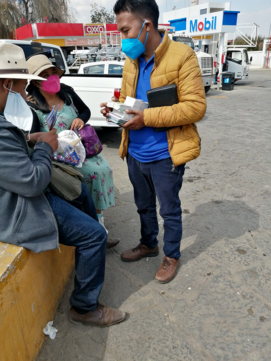 Durante esta actividad, encontré a Francisco y Olga Salgado, que venían del poblado el Rincón de la Candelaria.  Me acerqué a ellos para entregarles el folleto, Esperanza en la Crisis. Al ver la imagen del folleto, Olga expresó: “En nuestra familia, está terrible el coronavirus. Algunos familiares que se contagiaron estuvieron muy graves y hasta la fecha están todavía en recuperación. Por eso, nosotros siempre cargamos nuestro cubrebocas para evitar el contagio.”  Le contesté: “Hace usted muy bien en tomar en cuenta las recomendaciones sanitarias. Le comento que hay algo peor que el coronavirus y eso se llama pecado. Este mal ha existido desde el principio de la humanidad y la Biblia dice en Romanos 6:23 “Porque la paga del pecado es muerte, más la dádiva de Dios es vida eterna en Cristo Jesús Señor nuestro.”