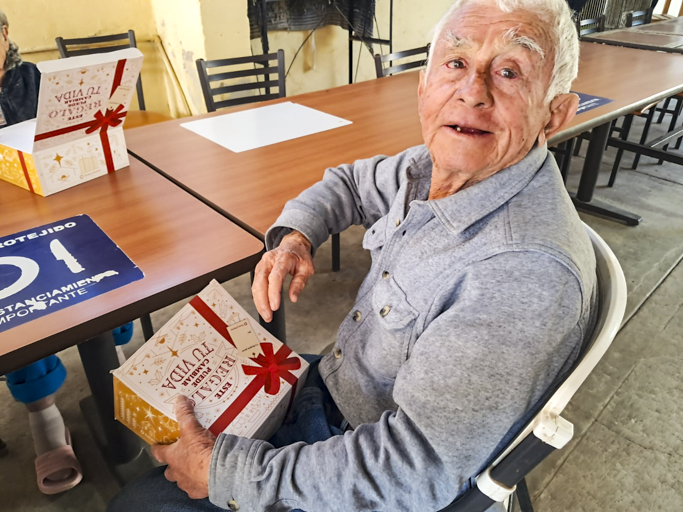 “Quiero agradecer a Cruzada Mexicana por haber pensado en nosotros. Agradezco que nos hayan traído este regalo tan hermoso que hoy valoro. A mi edad, el mensaje de esta cajita que dice Este regalo puede cambiar tu vida ha impactado mi ser ya que he recordado el amor tan maravilloso que tiene Dios hacia la humanidad enviándonos a Su Hijo Jesús para que viniera a salvarnos de la muerte.